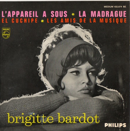 Son premier vrai disque sort au printemps 1963. II n’y avait pas de raison qu’il ne devienne pas un succès, surtout que les titres proposés sont mieux que du n’importe quoi. On entendra sur les radios, parler d’un endroit qui va devenir célèbre, « La Madrague ». Charmante petite balade qui parle de l’été et de la mer, que sa voix douce emmène vers la rêverie. Bien sûr cette année-là, le yéyé est en pleine expansion, pour coller à cette mode, on lui fait enregistrer « L’Appareil A Sous ». Vu qu’elle enregistre chez Philips, on fait appel à un compositeur maison, Serge Gainsbourg, qui concocte un de ses textes dont il a le secret, lui collant une mélodie bien dans le son de l’époque. Elle chante également un titre en espagnol « El Cuchipe » dans une musique de couleur mexicaine. Elle chantera aussi en anglais, en italien et en portugais au fil de ses disques. Le dernier titre de ce disque, « Je Donne Ce Que Ce Veux » est une des nombreuses allusions à son statut de sex symbol. Ce thème reviendra très souvent, sous des formes diverses et en sous-entendus, avant d’être présent de manière beaucoup plus visible dans sa discographie.