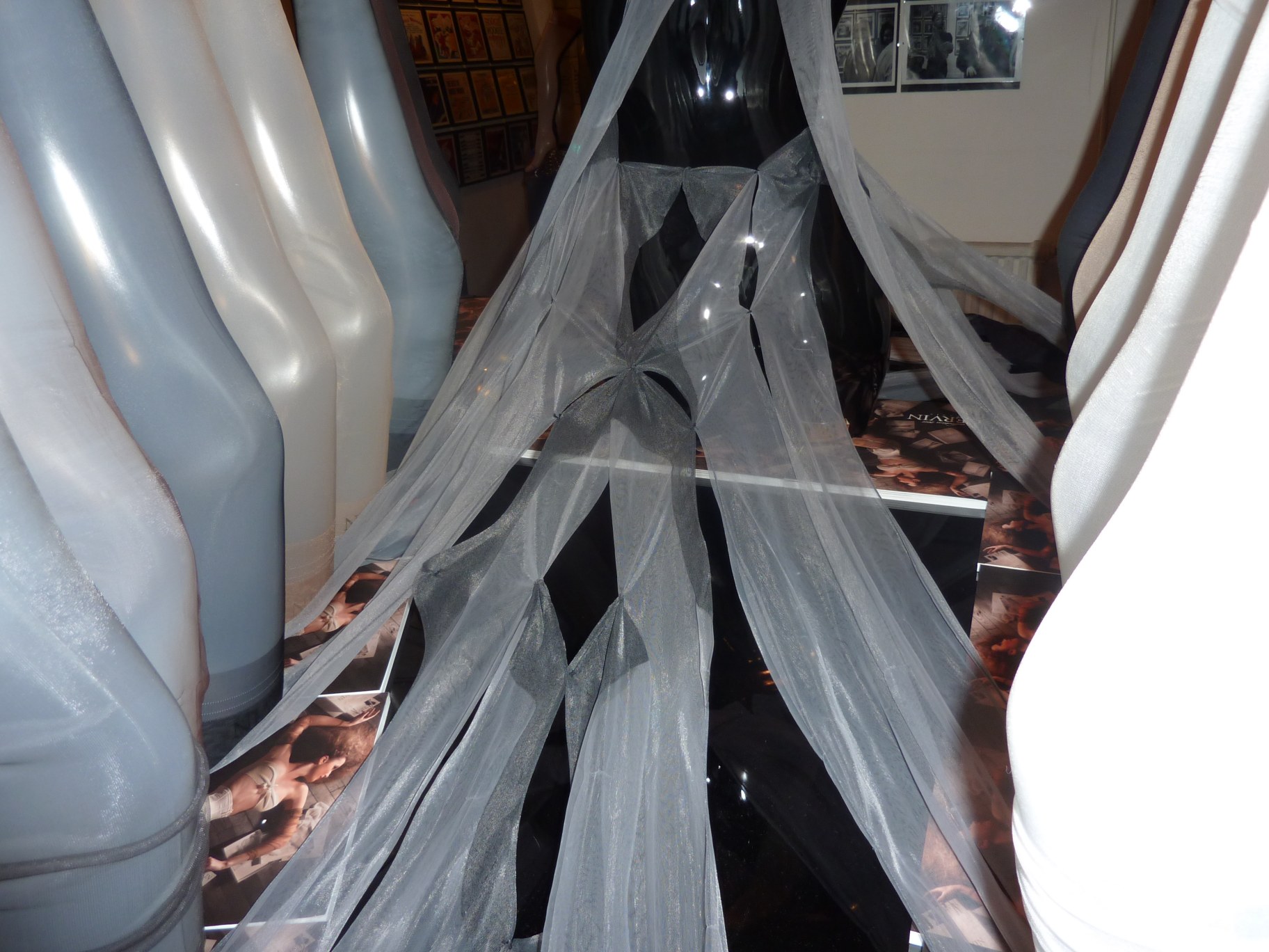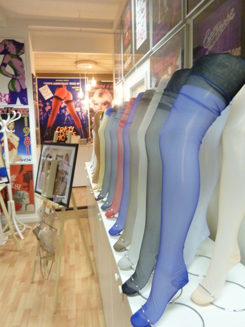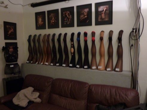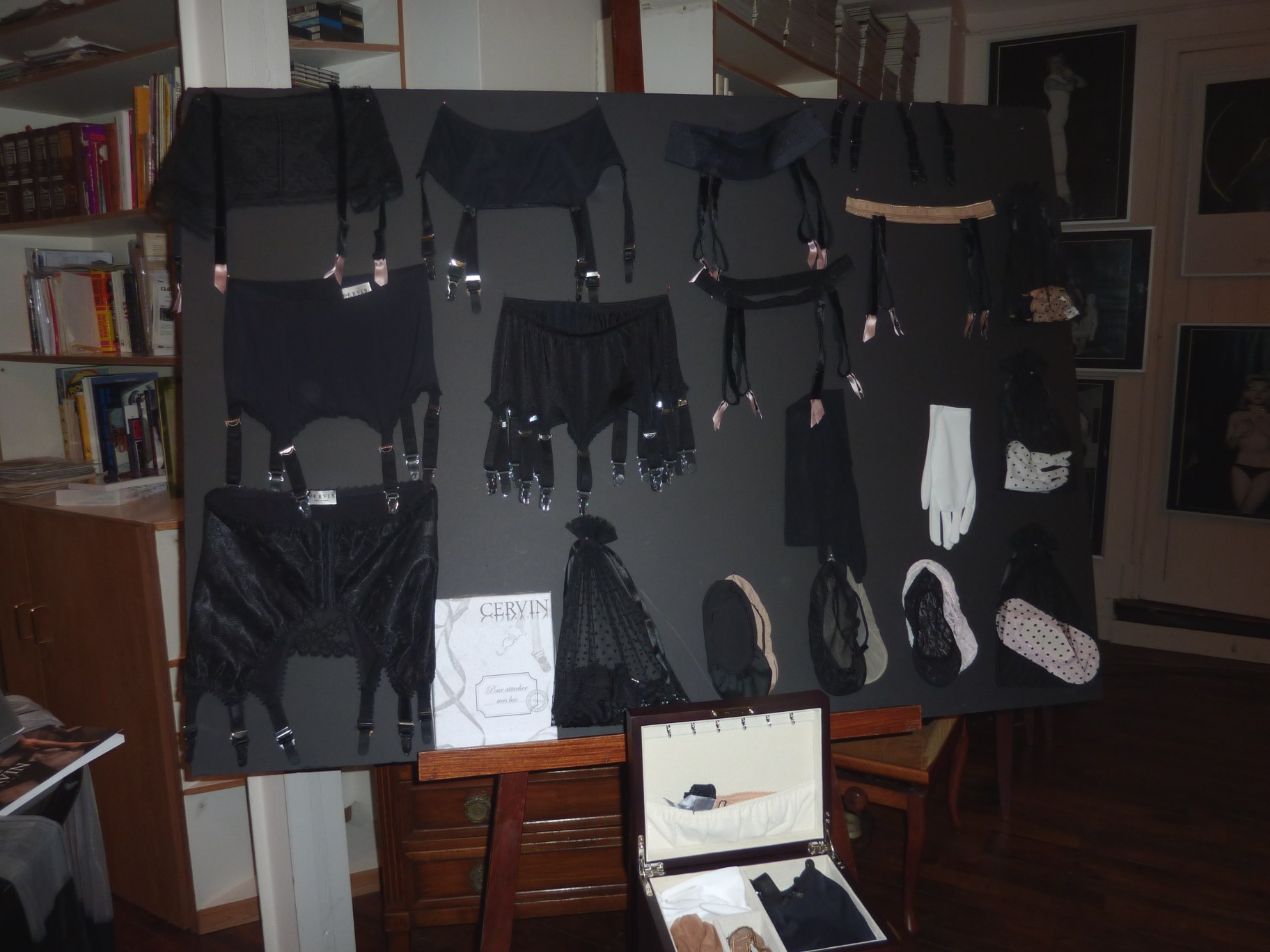 J’y retrouve dans un premier temps, une vieille connaissance, mon ami Claude, le photographe et saxophoniste jazzy. Un ami que je n’avais jamais vu auparavant et pourtant notre premier contact remonte a presque dix ans, grandeur et décadence d’Internet. Il fallait bien que cela se concrétise une fois, l’occasion était trop belle pour ne pas partager ensemble nos diverses passions, dont les plus fortes justifient notre présence en ces lieux. Merci à lui. C’est maintenant une sorte de sosie épicurien et nous aurons bien souvent l’occasion au long des ces soirées, d’installer une belle complicité. Merci pour elle. Voici Serge Massal, le manager, l’homme pour qui la technique n’a pas de secrets. Il m’emmène très aimablement à la découverte des lieux, Des mannequins qui n’ont qu’une jambe, mais non nulle cruauté, ils ont le coeur en bakelite. Ils attendent le commentaire du guide et l’écoute du visiteur. Ici ou là, il souligne un petit détail dont la réalisation a fait appel au savoir d’un autre âge. Savoir, dont juste quelques uns se rappellent. Oui, Cervin c’est aussi cela. Dans cette France qui est capable d’envoyer des trains presque aussi vite que des avions, on avait failli perdre une page de la bible de la mode, juste avant l’ouverture du  premier sceau de l’apocalypse, le collant. L’art d’un raffinement d’élégance, qui pendant des décennies vit tant de regards complaisants errer sur les jambes féminines, je parle bien sûr du bas diminué. Ici il existe, il renaît, il paraît, mais ne disparaît pas de la panoplie de celles qui l’ont adopté. Tiens justement en voici une, quelle belle démarche, quel spectacle, ces coutures qui montent à l’assaut dune paire de jambes au galbe parfait. Sans doute mes yeux doivent pétiller d’un éclat vif, ce n’est pas le champagne, pas encore, bientôt. Imaginons la rencontre des deux, quand l’heure se fera plus vieille, velours à l’intérieur en mille gouttelettes de nectar doré, nylon à l’extérieur en mille teintes qui s’irisent dans la lumière ambiante. Les anges passent. Que de réjouissances à venir…