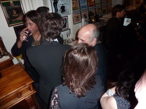 La vague humaine gagne en amplitude. Je m’imprègne d’elle. Elle arrive au rivage de mon regard en vaguelettes chaudes et caressantes. Je m’imagine un moulin à vent dont les pales seraient des jambes nylonées, poussées par une brise légère. Dans la  préférence de la ronde de mes yeux, je m’attarde sur celle-ci ou celle-là, jusque au moment où aspirée par les nues, elle est remplacée par une autre.  Ce moulin m’est bien utile , il sert à filer  le  nylon de ma toile mentale, alors araignée bien paisible et pacifique, j’attends qu’ils viennent se poser. Je découvre le visage de quelques fidèles visiteurs, amis bloggeurs, qui viennent à moi, l’air ravi. Je suis particulièrement flatté par les visiteuses. Elles ont deviné que j’abordais ma passion pour le nylon avec un regard plus admiratif que lubrique, heureusement nous sommes quelques uns à la faire. Chose merveilleuse, elles n’ont aucune gêne à parler de bas, porte-jarretelles et autres accessoires qui n’ont plus tellement de secrets pour elles. Parmi toutes ces aimables représentantes du féminisme préservé, je citerai en autres,  Miss Legs, Sandrine, Ghislaine. J’ai malheureusement oublié le nom de certaines, qu’elles me pardonnent, mais rien ne les empêchent de se rappeler à mon bon souvenir. Pour les messieurs, il y a bien sûr l’incontournable Gentleman W et quelques autres dont j’ai fait la connaissance sur les lieux. Le sympathique rocker belge Patrick Ouchene, qui excelle en géographie et plus spécialement dans la musique rétro, encore plus quand elle parle de bas nylon. Jean-Marc, l’ami des clopes fumées sur le trottoir devant l’entrée, mais aussi et surtout un formidable agent publicitaire pour moi. Merci l’ami! Et puis aussi le pianiste diabolique, Jean-Pierre Bertrand, avec qui j’ai partagé avec bonheur mes connaissances musicales mêlées aux siennes, de quoi refaire le monde. Mais rendez-vous est déjà pris pour un plus tard et je m’en réjouis déjà.