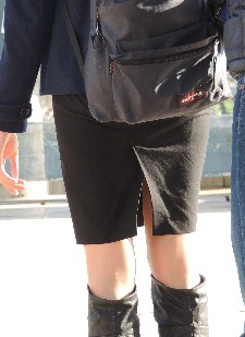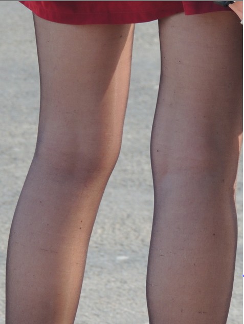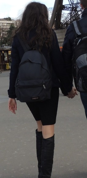 Venons en au deuxième cas intéressant, une jeune fille avec son copain, des slaves probablement. Elle a profité de l’air de Paris pour se mettre aux bas à coutures. j’hésitais entre bas et collants quand elle s’est assise sur le mur. A partir de là, cela devenait un peu plus visible. Sûrement des bas attachés très hauts, en rapport avec la longueur de la jupe. Je n’ai pas pu prendre de photo qui le montre, mais par contre les coutures, alors là, une bien belle prise.