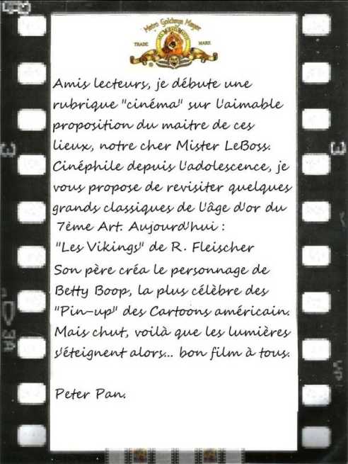 J’ai demandé à mon visiteur assidu Peter Pan, féru de cinéma, de nous mettre en lumière quelques films qu’il aime bien. Son choix est personnel sans aucune contrainte de ma part. Je le remercie de sa participation à ce moment culturel.