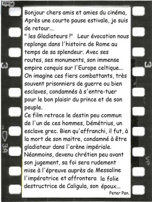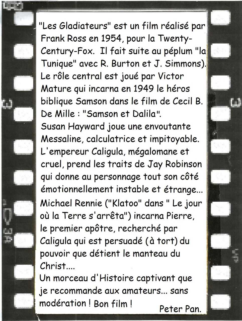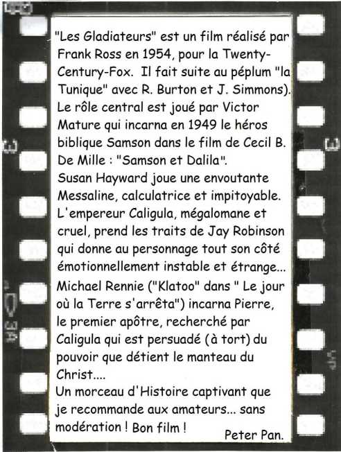 Tous les acteurs se surpassent et Jay Robinson nous donne là un Caligula presque effrayant. Le nom de cet empereur, qui fut natif de Lyon, alors capitale gauloise, signifiait « petite godasse » ou « petite sandale »- caliga » en latin. En raison de son caractère très instable, ses contemporains lui reprochaient d’avoir fait nommer « consul » son cheval attitré. Point positif de sa politique : sous sa gouvernance, il fit entrer la noblesse gauloise au Sénat qui lui était jusque-là