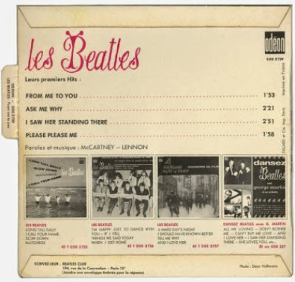 The Beatles – Odeon EP SOE 3739. Publié en 1963. Meilleure enchère sur Ebay 130 euros, label bleu,