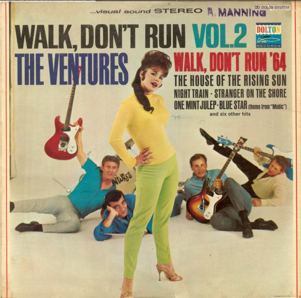 Pour illustrer le propos, j’ai choisi un album datant de 1964. Il illustre très bien la démarche et il montre que les Ventures sont en 1964, loin d’être en retard et même un peu en avance L’album fut une assez grosse vente, car il contient une nouvelle version de leur hit de 1960 « Walk Don’t Run » qui se classa dans le top ten US. Si la version originale est un rock, ici il est repris à la mode surf qui déferle aux USA avec les Beach Boys entre autres. C’est presque un titre complètement différent, on peut parler de nouvelle version car c’est réellement le cas. Parmi les originaux, notons la présence de titres qui deviendront populaires par la suite surtout « The Creeper » et « Pedal Pusher ». D’autres titres montrent que la fuzz guitar n’a plus de secrets pour eux. Au niveau des reprises, vous reconnaîtrez le hit des Animals, ainsi que quelques hits venus d’ailleurs. Un peu plus subtil, sous le titre « Rap City » se cache un arrangement de la « Danse Hongroise no 5 » de Brahms. Comparez avec d’autres albums d’époque et vous verrez que cela n’a rien de ridicule dans la recherche sonore. Le groupe existent encore, mais tous les membres de la grande épopée sont décédés. Seul lien véritable et familial, le batteur Leon Taylor est le successeur de son père Mel Taylor, décédé en 1996.