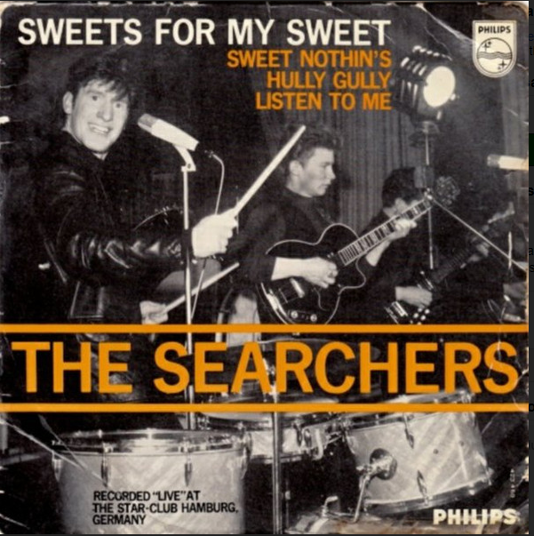 Historiquement ces enregistrements datent d’avant la période du début du succès en 1963. Comme pas mal de formations anglaises, les Searchers allèrent user leurs semelles au fameux Star-Club de Hambourg. Ils sont déjà bien rôdés et le label Philips profite d’enregistrer un des concerts. Dans un premier temps les bandes restent dans les tiroirs, mais vu le succès qu’ils obtiennent après, on décide de les exhumer. L’Allemagne publie un album qui sera aussi publié au Japon, tandis que la Hollande se contente d’un EP, celui-ci. Ils n’allaient pas louper le coche, avant d’en faire leur premier hit « Sweets For My Sweet » cette reprise des Drifters figurait déjà dans leur répertoire live, le titre est donc bien mis en évidence. Ces enregistrements ne contiennent que des reprises, mais elle nous replongent plus de 60 ans en arrière avec des publications assez difficiles à dénicher en éditions originales.