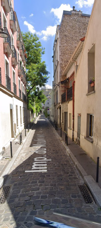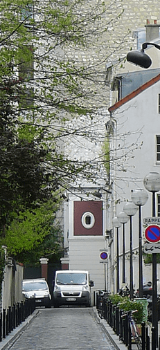 Le second voyage nous plonge un peu dans la même ambiance. Mais cette fois, il y a en quelque sorte une préméditation de ma part. Lors d’un séjour parisien qui remonte très loin, 45 ans à vue de nez, je séjournais dans un hôtel situé dans le 14ème arrondissement. Je crois qu’il n’existe plus, mais pour le rejoindre j’empruntais la rue des Plantes à l’angle de la rue d’Alesia. Il y avait sur la droite une ouverture entre deux maisons, appelée impasse du Moulin-Vert. Quand je passais le soir, je jetais un oeil dans cette ruelle mal éclairée et qui m’avait l’air d’un vrai coupe-gorge. Jamais je n’aurais osé y pénétrer. Je ne sais pas pour quelle raison, mais le nom m’était resté en mémoire. J’aurais sans doute fini par l’oublier, si je n’avais lu à quelque part qu’un acteur à la carrière en dents-de-scie y résidait dans une maison située tout au bout de l’impasse au no 25. C’est là que Patrick Dewaere mit fin à ses jours le 16 juillet 1982.