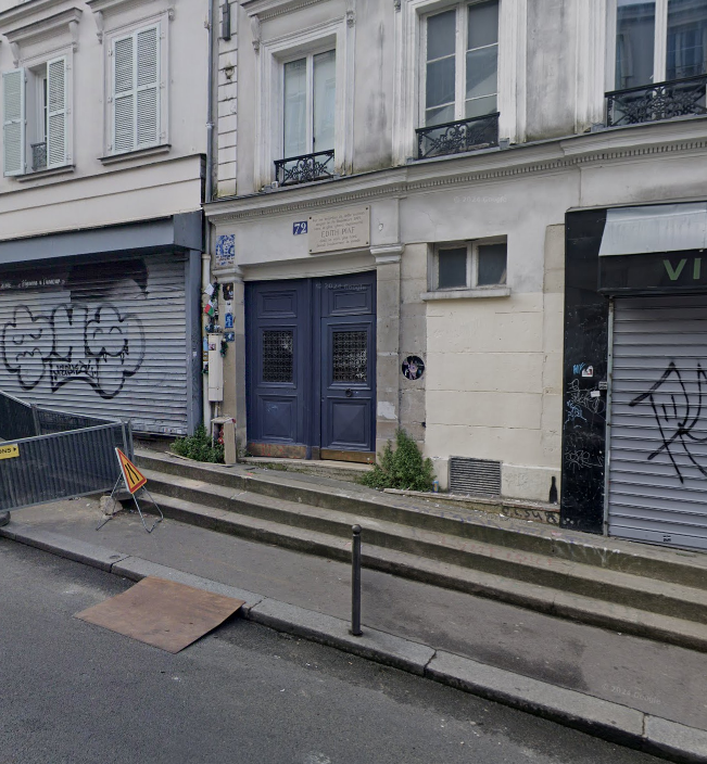 Restons dans le quartier et allons au 72 rue de Belleville. C’est peut-être l’endroit que quelques Parisiens arrivent arrivent à situer et dire quel fait s’y rattache. Les légendes ont parfois la vie dure et apparemment c’est le cas ici. Une plaque apposée au dessus de l’entré mentionne que la plus célèbre des chanteuses françaises du 20ème siècle et internationalement connue est née sur les marches devant la maison. Il s’agit bien sûr d’Edith Piaf. La seule certitude est que ses parents artistes de cirque, du moins sa mère, le père étant très volage, ont habité la maison. Selon le certificat de naissance, la môme Piaf est née le 15 décembre 1915 à l’hôpital Tenon situé un peu plus loin. Il est tout autant certain que son enfance fut très misérable, sa mère ne l’aimait pas et c’est la grand-mère maternelle qui s’occupa surtout d’elle. Cette branche de la famille est d’ailleurs d’ascendance arabe, marocaine plus précisément. La légende fut soigneusement entretenue, il est vrai que cette femme née dans la misère pour devenir une star, s’accommodait mieux de ce départ dans le dénuement total. Cela n’enlève rien à sa gloire, elle restera probablement la chanteuse française la plus immortelle.