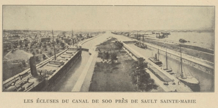 En partant des chutes du Niagara, la prochaine étape de notre voyageuse est le parc de Yellowstone. C’est une autre attraction touristique déjà fort connue en 1901. Avoir envie d’y aller est une chose, y aller en est une autre, il y a 2500 km à vol d’oiseau entre les deux lieux. L’aventure réside sans doute plus dans le fait de s’y rendre que la visite elle même. Le début du voyage s’effectue en bateau à travers les lacs Erié, Huron Lac Supérieur, ces lacs étant reliés en eux par des canaux ou des rivières. Si vous avez un peu la géographie des USA en tête, vous remarquerez que l’on est loin de suivre une ligne droite vers l’ouest, on remonte plutôt vers le nord. Ce n’est pas complètement illogique, car Yellowstone se trouve sur une latitude plus au nord que les chutes du Niagara, dans l’état du Wyoming.