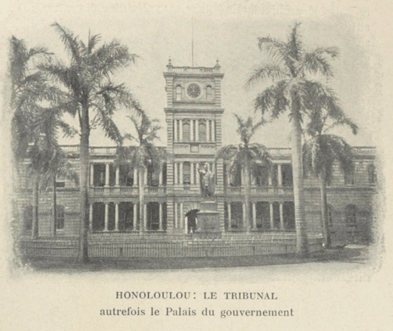 Qu’il me soit permis de faire une petite digression historique avant de raconter nos excursions. Les îles Hawaï ou Sandwich étaient connues des Japonais au XIIIe siècle déjà. Des Espagnols, jetés sur la côte, y atterrirent trois siècles plus tard; ils y laissèrent des traces de leur passage, car lorsque Cook aborda pour la première fois à Hawaï, il y trouva des morceaux de fer apportés très vraisemblablement par des Européens; les traditions du pays parlent, en outre, de blancs venus dans l’île sur des forêts qui marchent; quelques indigènes au teint et aux cheveux plus clairs se disent les descendants de ces anciens explorateurs. Ce n’est qu’en 1778 que Cook découvrit les îles auxquelles il donna le nom de son protecteur, l’amiral Sandwich. Après Cook, vint Vancouver sous le règne du chef Kamehameha Ier, le souverain le plus puissant de la Polynésie, qui réunit les huit îles habitées de l’archipel sous sa domination et les gouverna avec beaucoup de sagesse, de 1789 à 1819.