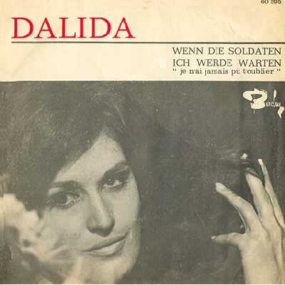 1964 – Wenn Die Soldaten. Une chanson inspirée d’une musique militaire allemande, aussi chantée par Marlène Dietrich. Sans équivalent français à ma connaissance, c’est un bel exemple de pur Dalida quand elle fait de la chanson un peu triste. Ce titre existe en pressage français sur un très très rare single jukebox