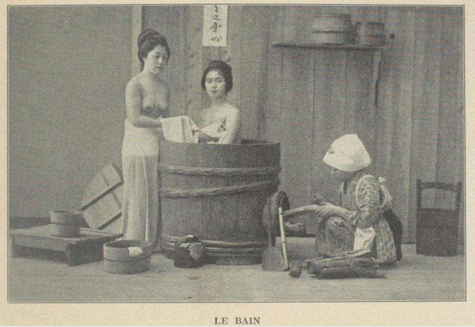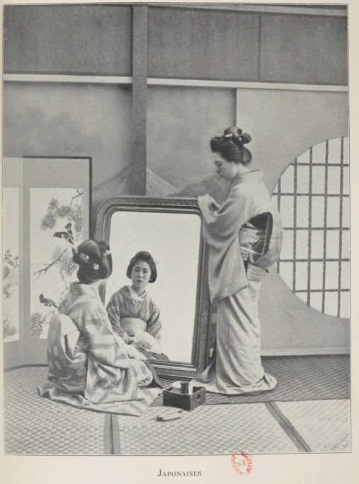 La Japonaise se meut librement chez elle et dans la rue. Elle fait preuve vis-à-vis des étrangers d’une amabilité confiante et sans coquetterie, bien différente de l’isolement craintif des filles de l’Islam. On les voit partout, les mignonnes petites nésans ou mousmés bavardes et curieuses. Au moment où vous vous y attendez le moins, voilà Mlle Printemps ou Mlle Fleur d’abricot-les Japonaises portent souvent des noms de fleurs — qui fait irruption dans votre chambre, furetant partout et touchant à tout. Lorsqu’elle a tout vu, elle ne songe nullement à s’en aller, mais s’installe commodément par terre. Il arrive généralement une amie qui recommence les mêmes investigations. Le caquetage et les rires vont leur train, tout cela, n’en doutez pas, aux frais de la stupide étrangère qui n’a pour réponse à toutes les questions qu’un hochement de tête!