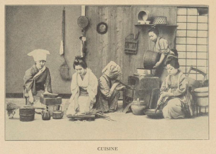 Dans la troisième partie de mon appartement il y a un lit de camp, très bas, en bois; concession aux exigences des étrangers; car les Japonais dorment, enveloppés dans des couvertures, à terre sur des nattes. Les femmes, pour ne pas déranger l’équilibre savant de leur jolie et volumineuse coiffure, qu’elles n’édifient qu’une fois par semaine, ont, en guise d’oreiller, le makoura, petit chevalet dans lequel la nuque s’emboîte. Je me serais parfaitement accommodée de ma couche improvisée, si les coussins et les couvertures bariolés n’avaient exhalé une odeur pénétrante qui m’empêcha de dormir. Puis, comme toujours, on entend le bruit sec des sandales trottant dans la maison et le froissement des pieds nus sur les nattes dans les chambres voisines. A mon réveil, de bon matin, je vois mon boy auprès de mon lit. Sans s’annoncer, il a fait glisser les panneaux qui ferment ma chambre à coucher et il est là grimaçant et parlant avec volubilité. J’entends le mot furo qui revient à tout moment dans ce flot de paroles et mon imagination au galop est en train de lui trouver une parenté avec fur qui, en latin, signifie voleur. Mais non, me voici tout à fait éveillée et je comprends que le furo est tout simplement le bain. Ayant eu jusque-là des nésans à mon service, je m’étonnai, à juste titre, que l’on me donnât, pour m’accompagner au bain, un domestique mâle. 0 take-san fait-elle donc la grasse matinée? 0 take-san, cela veut dire Mademoiselle Bambou; 0 est la formule de politesse, take signifie bambou et san s’emploie indifféremment pour Monsieur, Madame ou Mademoiselle. Je suivis donc boy-san. Mon bain, pour Monsieur, Madame ou Mademoiselle. Je suivis donc boy-san. Mon bain, une grande cuve d’eau si chaude qu’on y aurait cuit des écrevisses, était préparé en bas. Mon premier soin fut de pousser mon boy dehors et de tirer la cloison de papier, concession, elle aussi, à la pruderie européenne, car le jour précédent, en traversant le village de Moto-Hakone, j’avais pu admirer, spectacle comique et peu ordinaire, tous les habitants du village, jeunes et vieux, hommes et femmes, assis chacun dans son récipient de bois, se bouillant à qui mieux mieux sous les yeux des voisins et des passants.