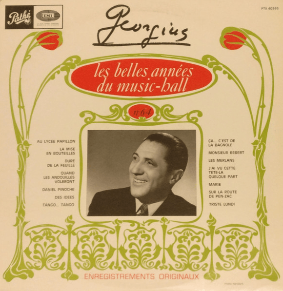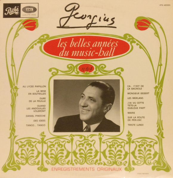 Puisque la novelle année est un prétexte à la bonne humeur, revisitons un peu le répertoire de Georgius (1891 – 1970) qui fut une célébrité pendant 40 ans. Compositeur prolifique il fut aussi un acteur et un écrivain. Evidemment les enregistrements parurent à l’époque en 78 tours, mais furent souvent compilés à l’apparition du microsillon. Son style est résolument humoristique et aussi parfois un peu teinté de grivoiserie comme c’était assez la mode à l’époque. On peut aussi classer sa musique dans un swing à la française, bien qu’il ne s’agisse pas de l’idée première. Plusieurs de ses chansons sont encore connues aujourd’hui et même certaines expressions tirée des paroles. Il eut quelques ennuis après la guerre, on lui reprocha surtout d’avoir continué sa carrière durant l’occupation et subit une année d’interdiction de scène. Il se mit alors à écrire des polars sous le pseudonyme de Jo Barnais avec un certain succès. Il arrêta sa carrière de chanteur en 1951, tout en continuant d’écrire pour la Série Noire.