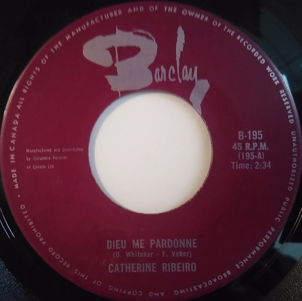 Catherine Ribeiro – Barclay – B-195, Canada, publié en 1965, meilleure enchère sur Ebay 93 euros.