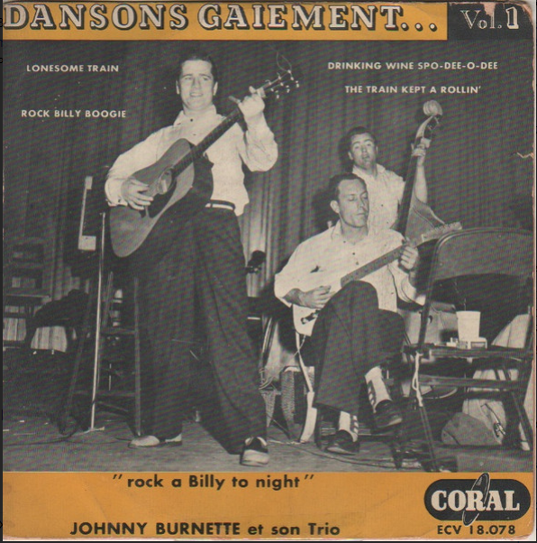 La France a eu un peu de mal à se mettre au rock and roll. Il a fallu le début du yéyé pour que lôn prenne vraiment conscience qu’il existait. A part Elvis Presley et Bill Haley, les publications sont assez peu nombreuses, et surtout n’intéressent que les plus curieux, ce qui fait que ces publications sont plutôt rares sur le marché des collectors. Après une première publication Vogue en 1957 concernant Johnny Burnette, Vogue récidiva dans une série de EP’s intitulée « Dansons gaiement » et publia ce second disque français de Johnny Burnette. Avant de devenir une star au tournant des sixties, il enregistra l’un des plus grands albums de rock and roll, un disque vénéré par les puristes. Le succès assez modéré qu’il eut dans ce style, rend ces publications assez rares. Son album original US peut se négocier à plus de 3000 euros. Concernant les 45 EP’s, pour une fois ce ne sont pas les publications françaises concernant Burnette qui tiennent le haut du pavé, mais les éditions allemandes qui peuvent atteindre les 2000 euros. Mais les éditions françaises font quand même assez bonne figure. Quoi qu’il en soit, si on a un peu oublié le Johnny Burnette chanteur de ballades, son rock and roll reste toujours renommé.