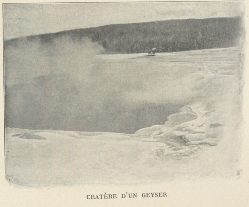 Voici enfin ce fameux parc. Le terme de parc est assez réducteur, car en fait c’est dans l’ordre de grandeur de la Corse. Il fut fondé par Ulysse Grand, le même qui commandait les troupes nordistes pendant la guerre de Sécession, devenu président. C’est un endroit de contrastes, on y trouve de tout même un gros volcan et bien sûr les fameux geysers dont le nombre dépasse les 300. La différence d’altitude est de 3462 mètres pour le point le plus haut et 1610 pour le plus bas. Le climat est montagnard plutôt froid en hiver avec des températures de -20 en hiver et +20 en été. C’est également une réserve de faune et de flore exceptionnelle. Il n’est pas étonnant qu’en 1901, une visite du parc est agendée sur six jours. Reprenons son récit…