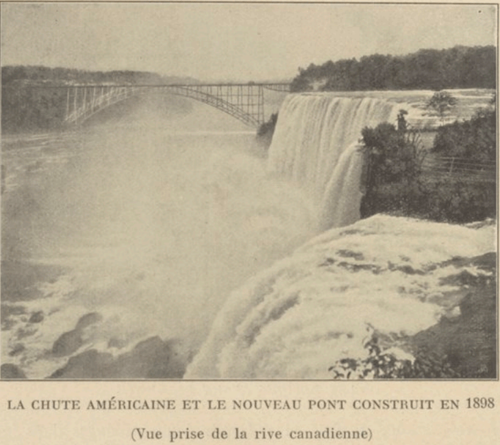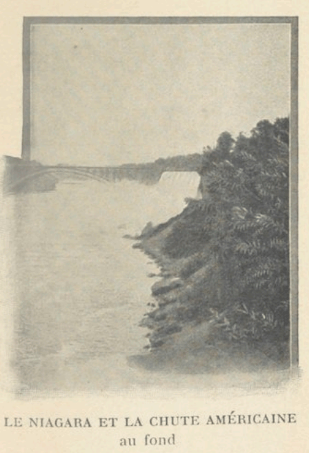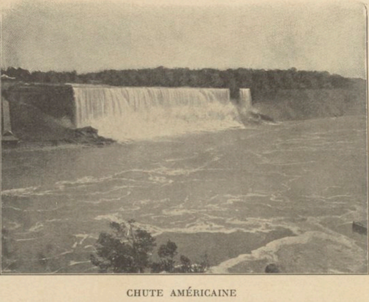 Dans l’hôtel allemand que j’ai choisi, la table est abondante et le prix de pension, trois dollars, relativement peu élevé. Quel dommage que les notions de propreté du personnel diffèrent tant des miennes! Les couverts sont malpropres, les habits des garçons crasseux, tandis qu’à deux pas la voix des grandes eaux évoque la sensation de la blancheur immaculée! Le mugissement de la cataracte au bruit de laquelle je m’endormais le soir, et la vue d’un superbe cerisier couvert de fruits rouges, devant ma fenêtre me firent passer sur ces petits inconvénients.