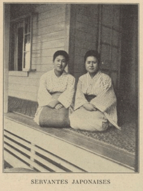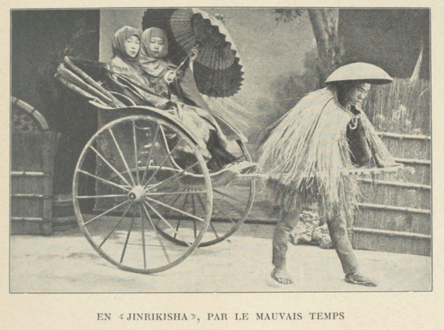 Notre silence forcé ne nous empêcha pas de jouir de notre première course en jinrikisha. Tout est nouveau, intéressant: les enfants, si petits, si mignons, les femmes coquettement parées qui trottinent sur leurs sandales de bois aux talons élevés, les villages proprets avec leurs maisons transparentes qui permettent aux regards de plonger jusque dans l’intimité de la famille. Oh! ce premier jour au Japon! Il est resté dans ma mémoire, intact et pur, comme un conte très beau dont je voudrais toujours garder le souvenir. Car en pénétrant plus avant dans le pays et dans la vie des indigènes, on n’aperçoit que trop le contraste attristant entre le décor extérieur et la réalité.