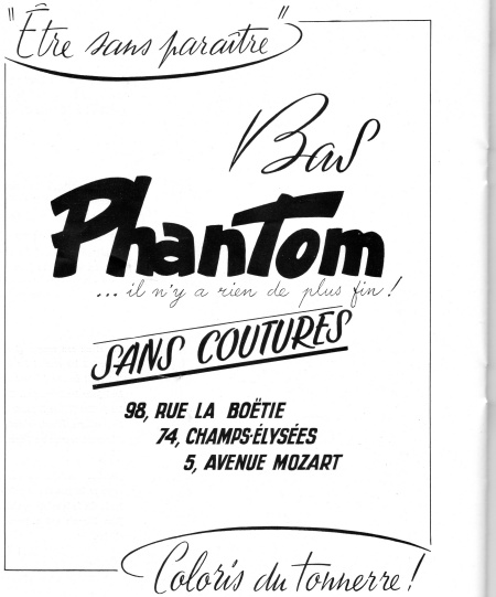 Une pub pour des bas est tout à fait dans les moeurs de l’époque. Il y a des dames dans la salle. Admirez la présentation du produit. On commence à parler de bas sans coutures