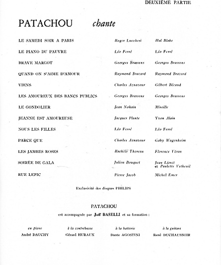 La répertoire du récital de Patachou
