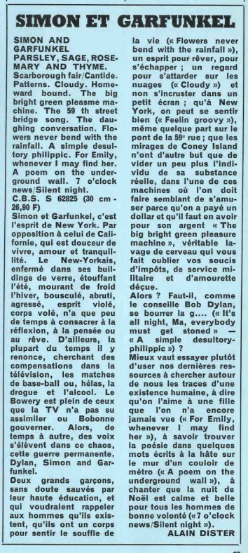 Dans Rock & Folk de juillet 1967, l’analyse par Alain Dister du second album du duo Simon And Garfunkel.